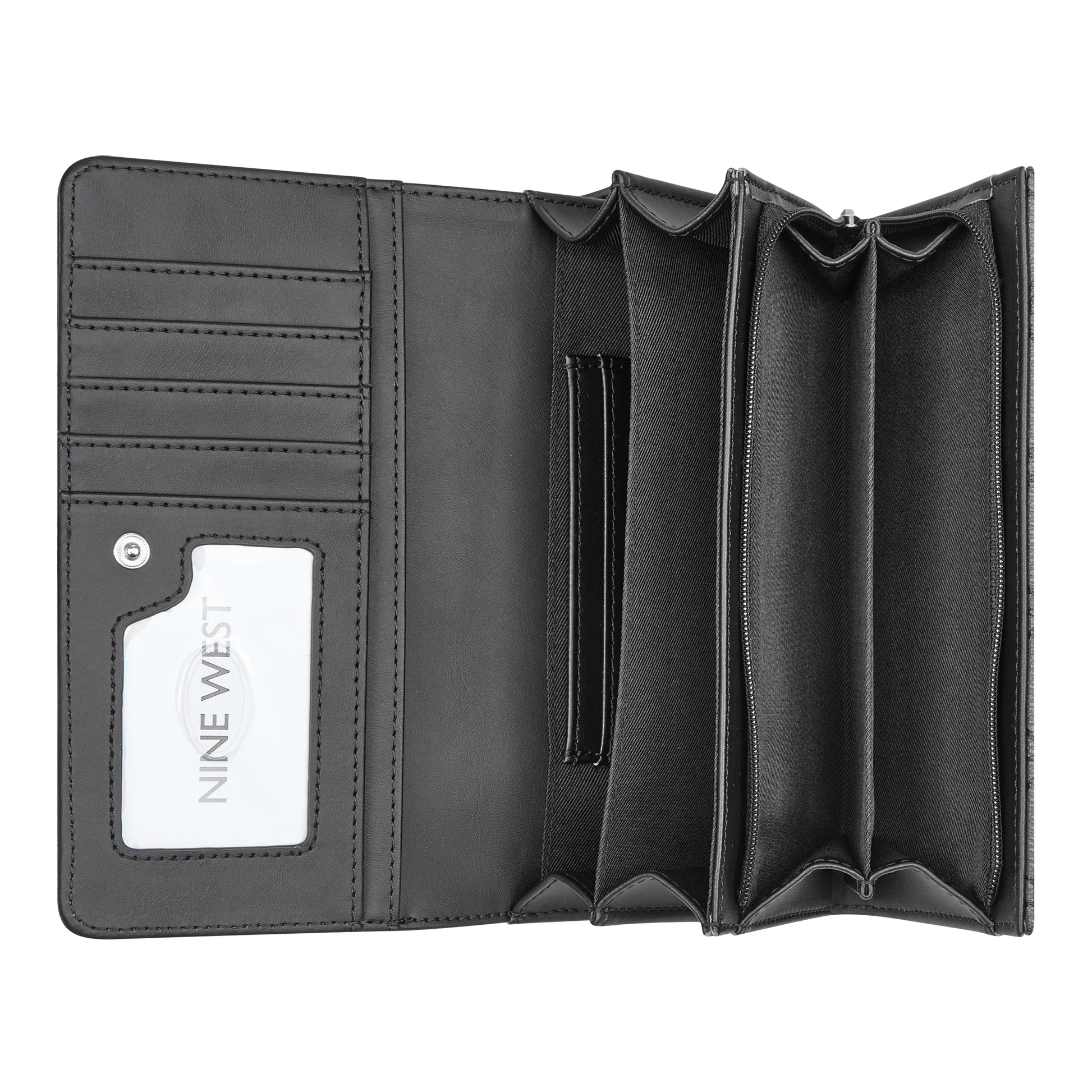 Sleek, compact, and effortlessly chic this Nine West wallet keeps your essentials organized in style. With multiple card slots, a secure zip closure, and a polished finish, it's perfect for slipping into your favorite bag or carrying on its own. Dimensions:18.5x4.5x11.0