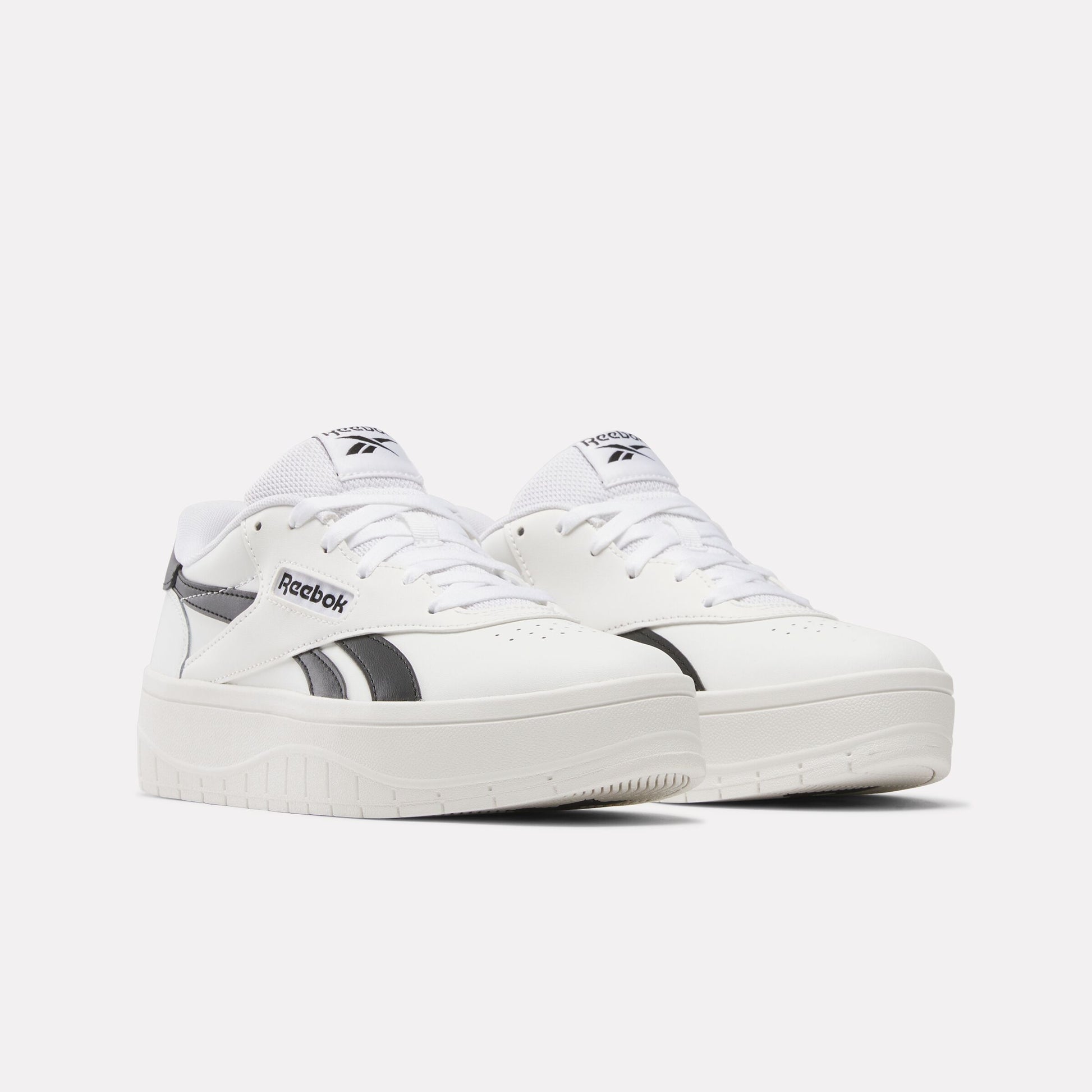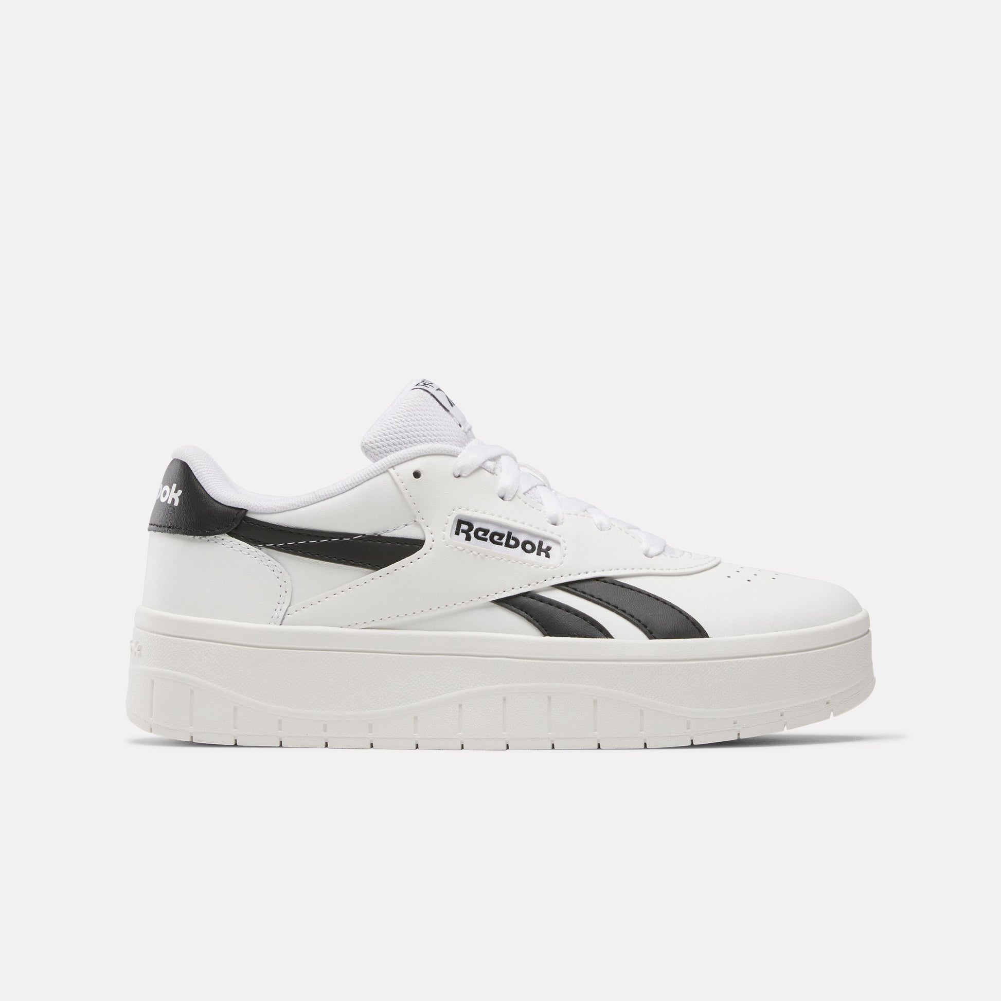Take your style to new heights in these women's Reebok shoes. With a platform design, they give you a classic elevated look while offering a minimalist upper. The leather upper shows off synthetic leather side stripes for the iconic Reebok look.