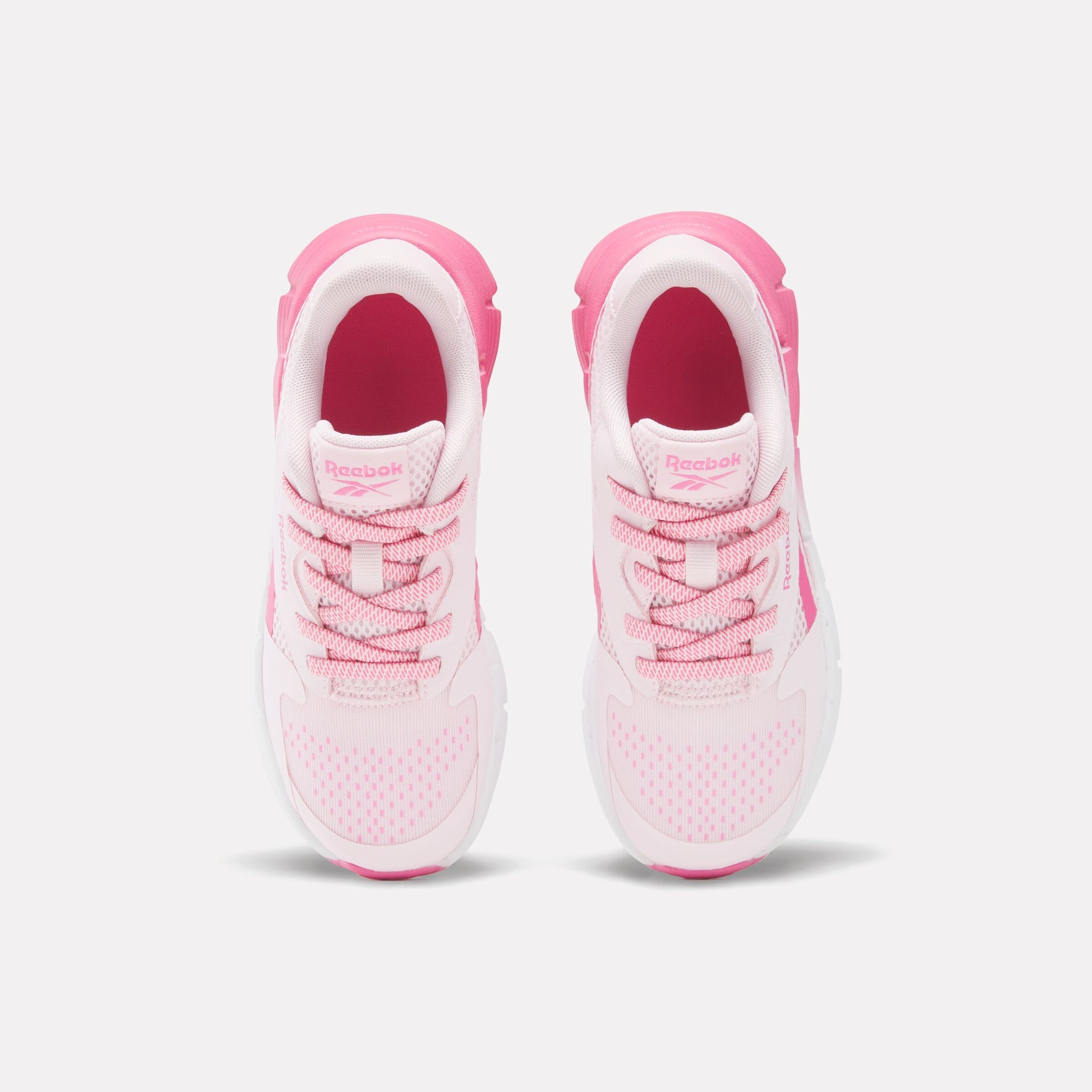 Because adventure shouldn't wait for shoe laces, these little girls' Reebok running shoes have elastic laces that make it a breeze to put them on and head out the door. Light and responsive, they're made to keep up with all her moves. A zig midsole with Floatride FuelFoam delivers heel-to-toe energy.
