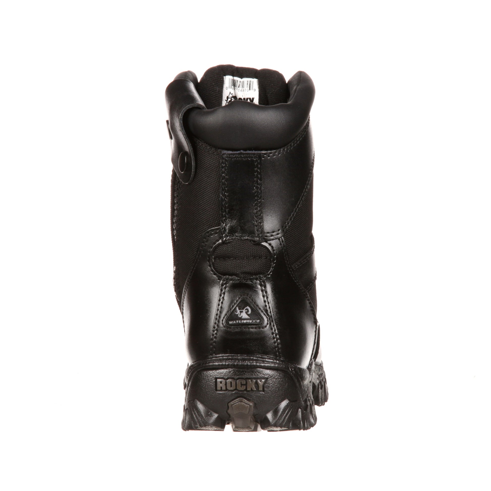 These Rocky Alpha Force boots are made with the Rocky Waterproof system.This system lets air flow in, but keeps water out. Your feet stay dry. Guaranteed.Your feet also stay warm. These black leather boots have 400 grams of 3M Thinsulate Ultra Insulation. The Alpha Force has a special oil-resistant and slip-resistant RigiTrac molded EVA/rubber outsole. These soles really grip the terrain to help you maintain your footing. If you're on your feet for much of the day, you also want your boots to be comfortable.You want the Rocky Air-Port footbed.This footbed is a high-performance, cushioning and comfortable footbed that circulates air with every step. It's molded from durable PU that won't break down or lose its shape. In addition to performance, these eight-inch public service boots also have the styling you want. They are made with full-grain leather and 900-denier combination nylon.These materials resist abrasions.Alpha Force is a completely black boot with black laces and side zipper