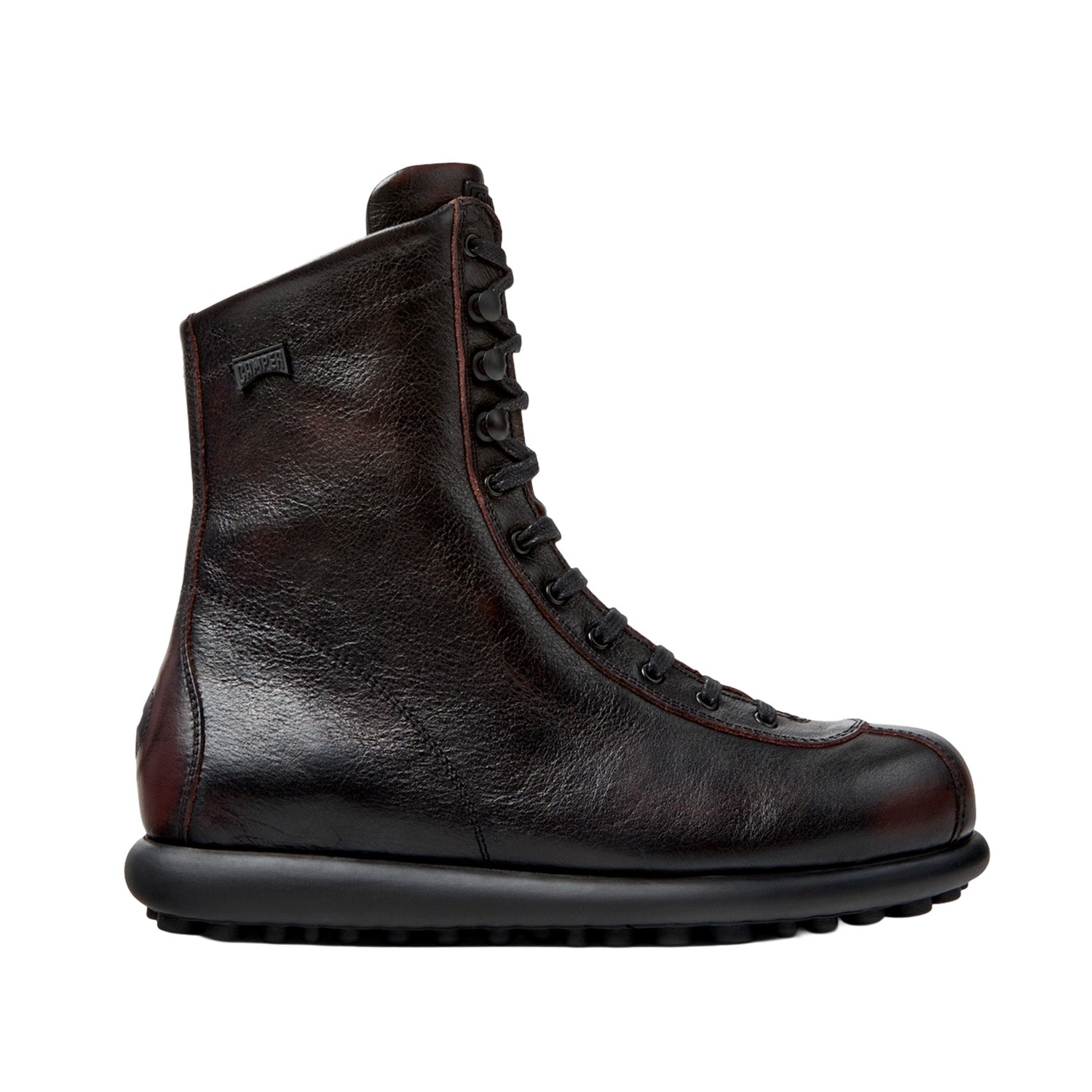 Calfskin vegetable tanned leather boots for women with PU footbeds and rubber outsoles. Pelotas Ariel is our most iconic Camper style. With an unmistakable, sport-inspired outsole comprised of 87 spheres, each pair is handcrafted from European leathers that is 360º stitched to the original rubber outsole.
